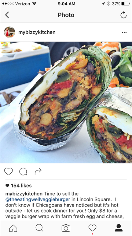 That is our veggie burger wrap – a southwest veggie burger made of organic pinto beans, black beans, corn, artichoke hearts, quinoa, amaranth and millet with a bit of jalapeno pepper for a kick. It’s wrapped in a spinach flour tortilla, and I can make it mile with our signature mild roasted red pepper coulis, or make it spicy with our house made giardiniera. AND we can add a farm fresh egg and cheese – all for only $8!