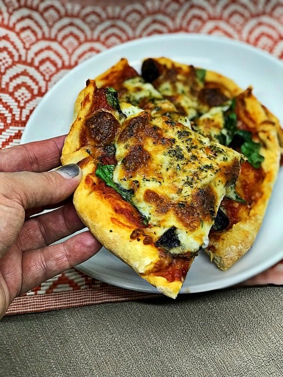 A LOW CARB PIZZA THAT DOESN'T HAVE CHICKEN! I recently discovered King Arthur Keto Wheat Baking Flour and was a bit skeptical. The dough is a bit "elastic" and took a bit of elbow grease to roll it out, but I loved how this came out. Do I prefer the OG dough - yes! But this dough is very close to the original one. If you are living a low carb lifestyle, or living with diabetes, you will love this option.