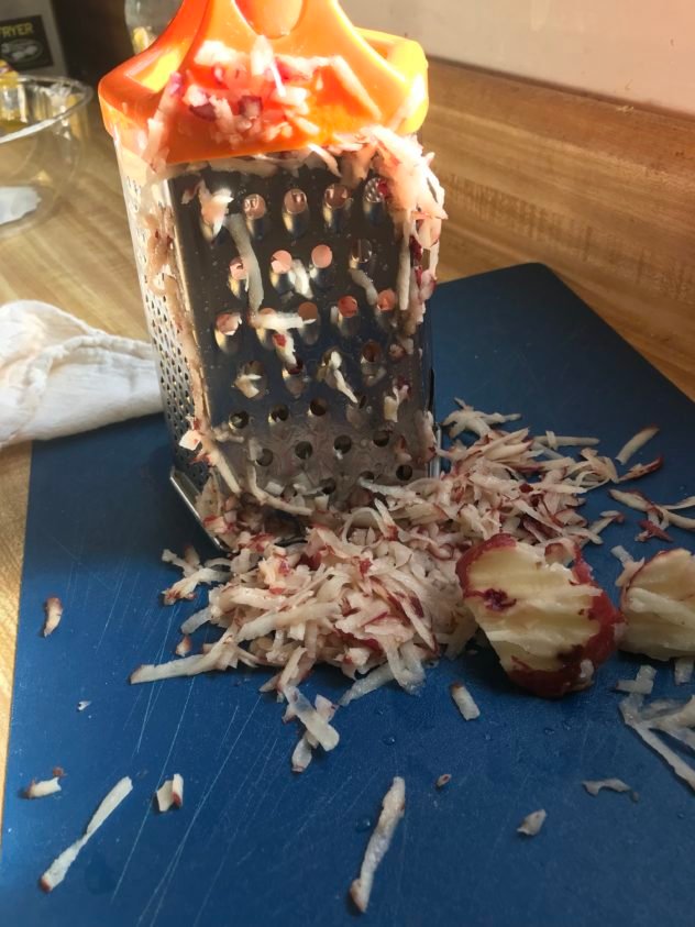 Hannah was proud of me because I used us stuff we already had. Because the red potatoes were raw, I sauteed them in a teaspoon of coconut oil until they got crispy and partially cooked – about ten minutes.