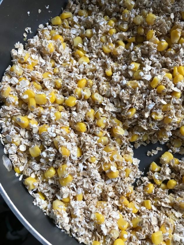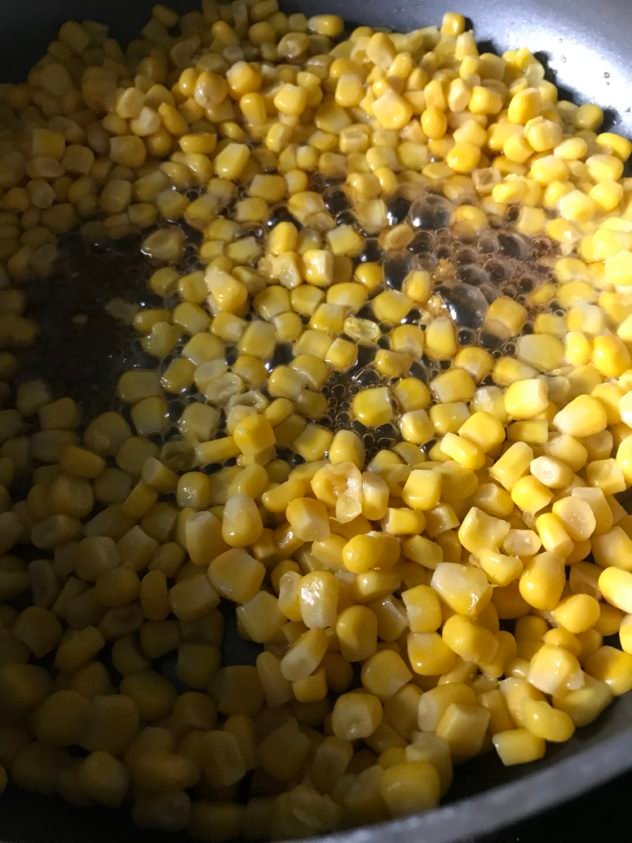 I used canned corn, but next time I’ll use fresh corn. I sautéed the corn in a tablespoon of sugar-free pancake syrup for a couple of minutes.