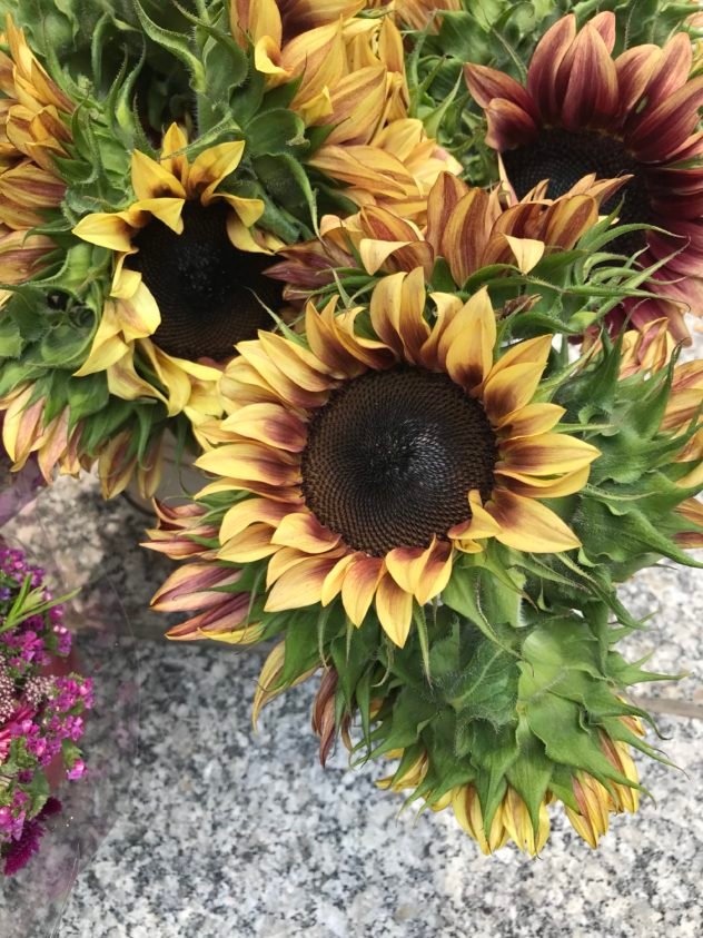 I should have bought a bunch of these sunflowers – so pretty! But, I already spent my $$, but next time I’ll use my first $6 and buy these flowers for myself. I love the autumnal colors.