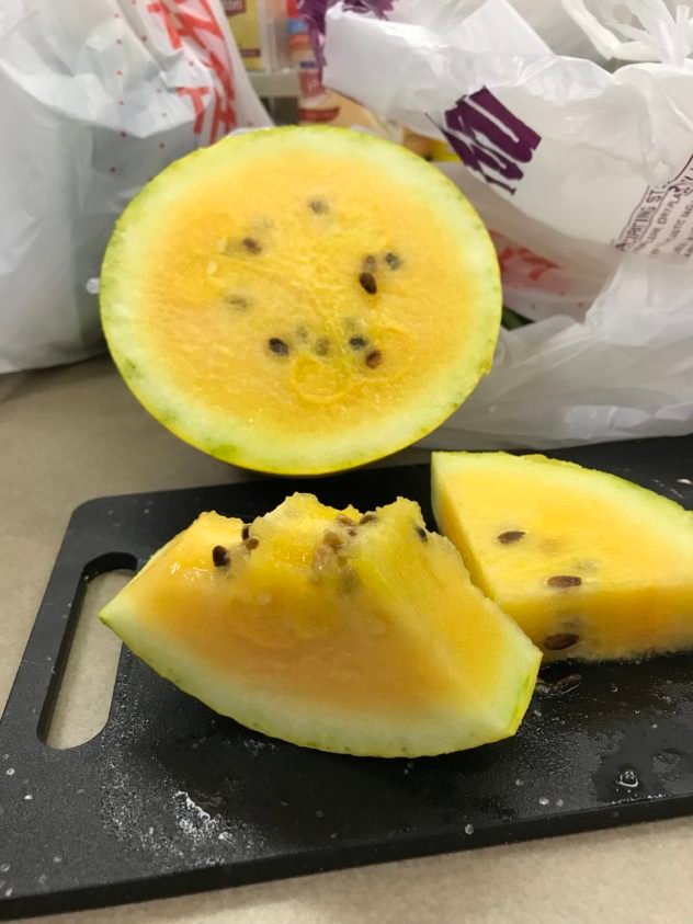Oh, and I also bought a yellow watermelon! Super mild in flavor – it’s been a while since I bought a watermelon with seeds.