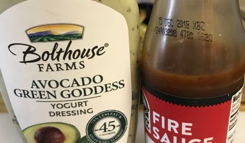My favorite zero point toppings on my tacos – a drizzle of each of these – makes it creamy and spicy. Yum. If you haven’t tried this flavor of Bolthouse Farms yet, it’s one of my favorite of theirs.