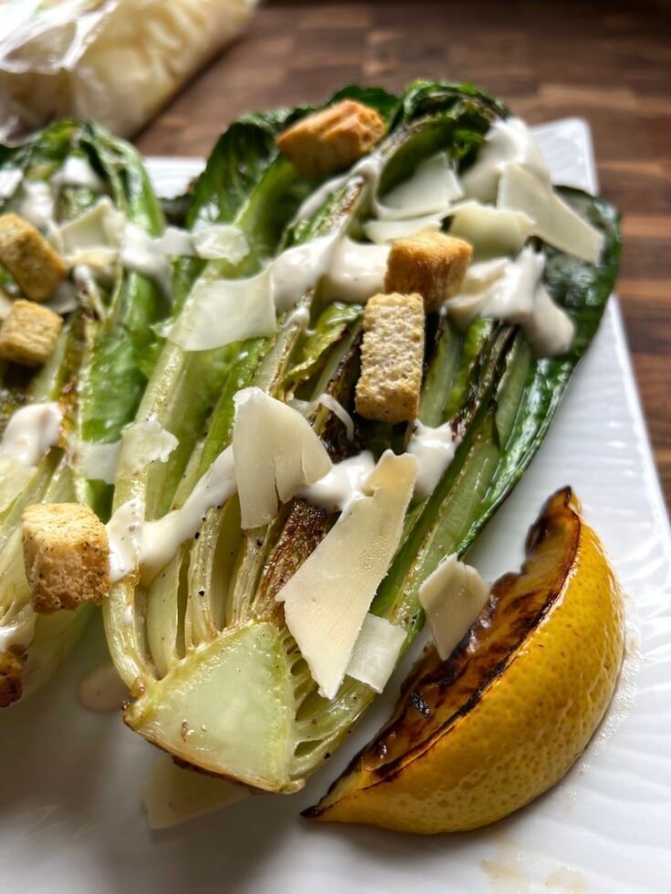 Charring romaine lettuce brings this caesar salad to a whole new level.
