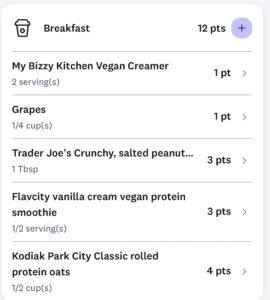 I recently decided to challenge myself by eating vegan for a week. One thing that immediately stood out to me was how the WW points were often higher than I expected, despite keeping my calorie intake around 1350 most days. It was a balancing act trying to find meals that felt satisfying without going overboard on points, especially since many plant-based options tend to have higher fats or carbs.