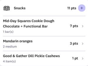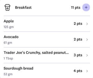 Thursday: 28 WW Points – 1,254 calories, 31 fat, 192 carbs, 18 fiber, 45 protein {35% fat, 46% carbs, 19% protein}