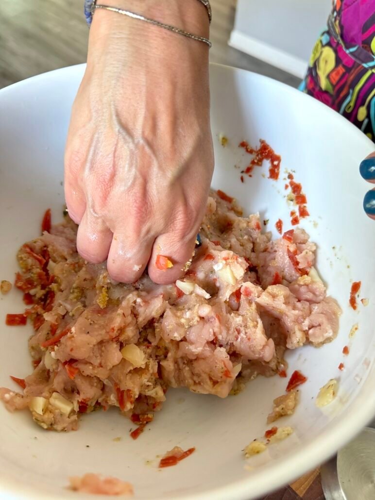 - Mix all the ingredients together. Take a small portion and cook to make sure it's seasoned to your liking. Make any necessary adjustments.