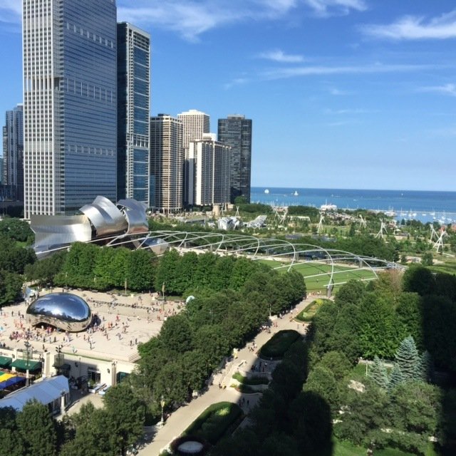 I walked around for a while, and then sat at the Millennium Park Plaza and enjoyed the breeze with a small beer. The view isn’t too shabby, is it?!