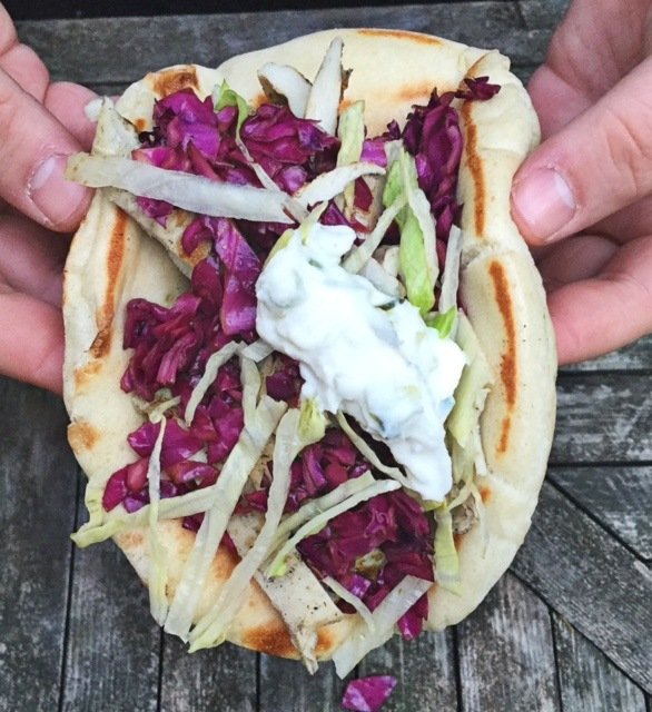 I can’t wait to hear about it, because I know it will happen( whatever it is). Your cabbage recipe is the same recipe I use for my grilled fish tacos. I love the acidity paired with the fish. I love Pita like that too, pocketless. Do ppl look at you guys when you’re out together, do people ever approach you because of the twin thing?