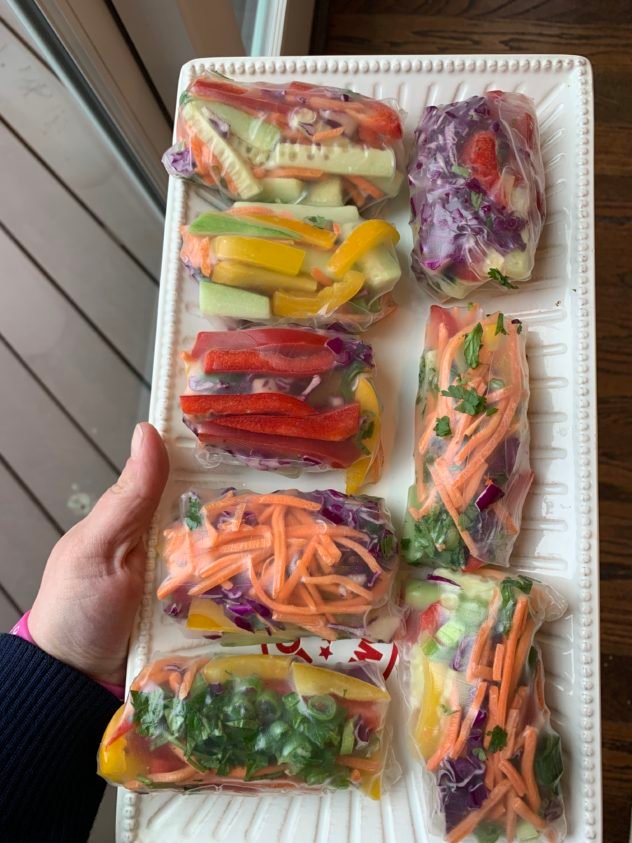 Courtney made these delicious spring rolls – I’ve never had any luck with the wrapping of spring rolls, and these were delicious – she made a peanut sauce on the side – so good!