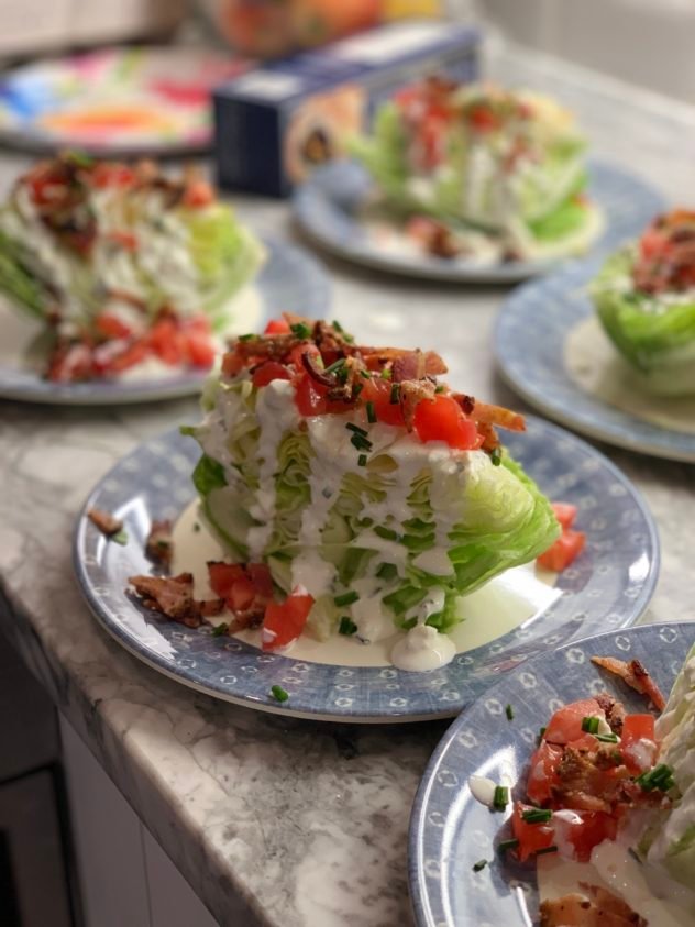 Mary Beth made the classic wedge salad – that was my late husbands favorite salad and if it was on a menu, he ordered it. She made a light homemade blue cheese dressing that was amazing.