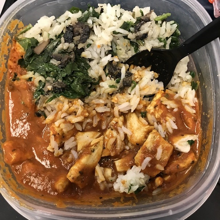 I realized I never posted my newes version of my chicken tikka masala that I made last weekend. I cheated and used an old picture from my blog when I posted my lunch on Instagram yesterday because my actual dish was in the plastic container below.