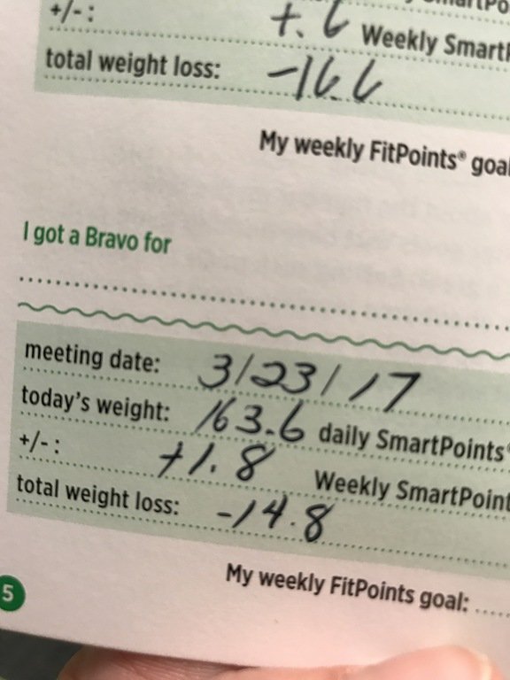 I didn’t end up going to WW before work for my weigh in, because I wanted to get in early so I could leave to go to the lunch time meeting. I am happy to report that my eating/drinking frenzy that was my birthday weekend, only cost me a 1.8 pound gain! Congrats to my twin sister though who LOST 2.2 during our birthday weekend. Great job!