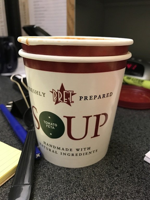 Lunch was on repeat – I fricken love the tomato feta soup from Pret!