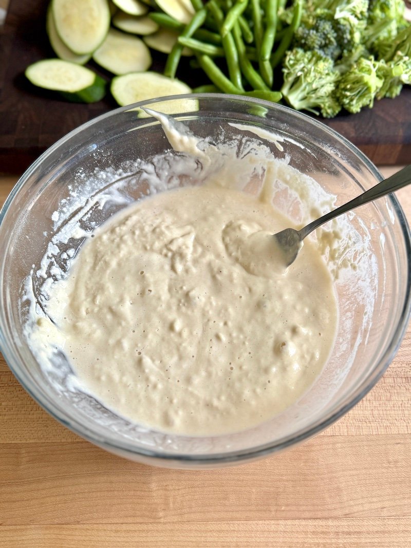 vegetables prepped to make tempura that is Weight Watchers friendly.