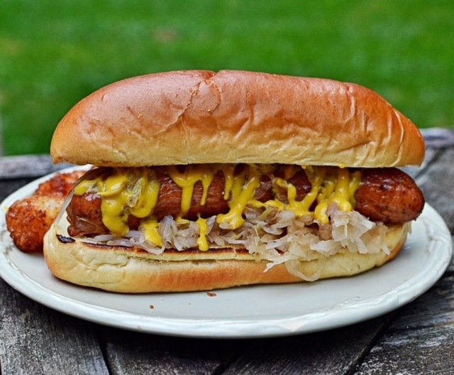I stopped by my Mom’s on my way home to pick up my stuff, and to grab her gas grill. She’s only used it a handful of times and I haven’t had one since mine died last summer. We managed to squeeze it in my car and while it was a noisy ride home, it made it to my place in one piece. I had other plans for dinner though. My boss gave me a frozen chicken last week from a farm in Wisconsin, and I put it in my fridge to thaw on Friday knowing I was going to be grilling it up last night. I pulled it out, unwrapped it and realized the inside of the chicken was still frozen. Rats. Normally I wouldn’t care and would just cook it low and slow, but it was already going on 6:00 p.m., my coals on the Weber were not lighting at all (I was almost out of lighter fluid) and quickly went with Plan B. Grilled Bobak’s smoked sausage on Turano Bread rolls with sauerkraut, Plochman’s ragin’ mustard with tater tots on the side. This was a point killer meal at 16.5 points, but before that I’d only had an English muffin, two cheese sticks and a small piece of leftover pizza, so it’s all good. And I love how I used all these Chicago products!