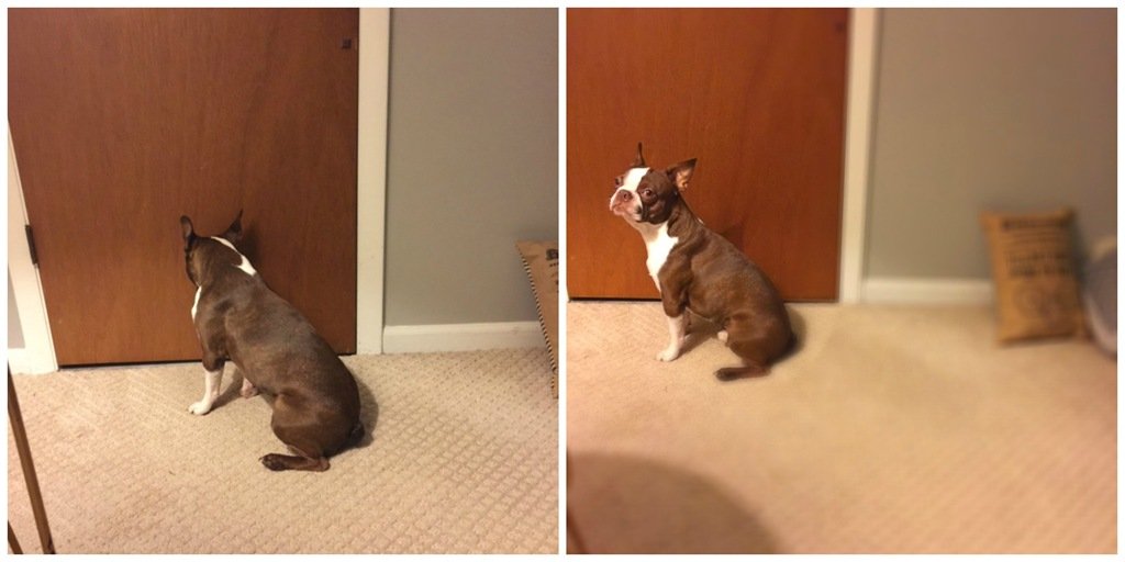 And last week the dogs slept with me a couple nights in a row. I put them in my bedroom and Roman immediately jumped off the bed and just stared at the door, no matter how many times I tried to get him to come into bed. I finally asked “do you want to sleep with your Mom and Dad?” and his look is priceless! Needless to say, once Roman left, Rummy left too.